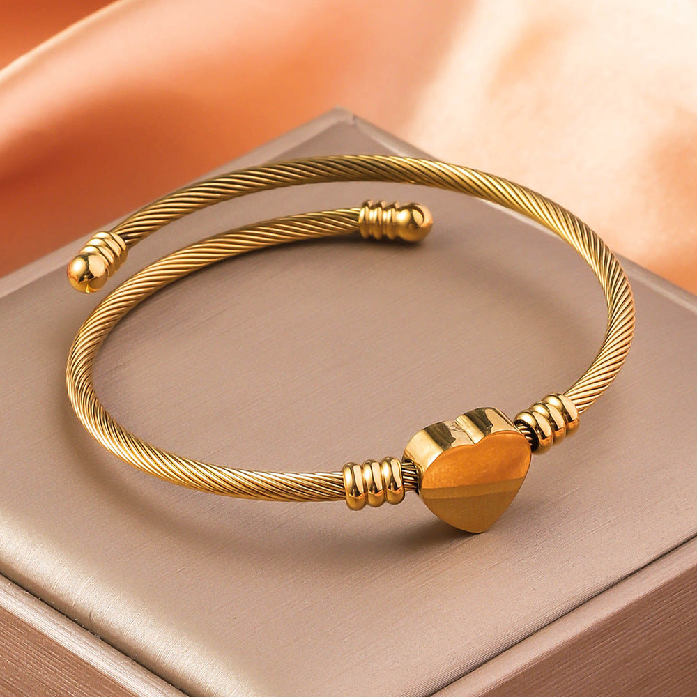 Elevate your everyday style with this Gold Heart Cable Cuff Bracelet πŸ’›β€”a modern favorite in minimalist gold jewelry, cuff bangles for women, and statement heart accessories. Featuring a sculpted twisted cable band in rich gold with a sleek heart charm centerpiece, this open bangle is bold yet refined. Lightweight, adjustable, and effortlessly elegant, it’s perfect for work, dates, or gifting! ✨